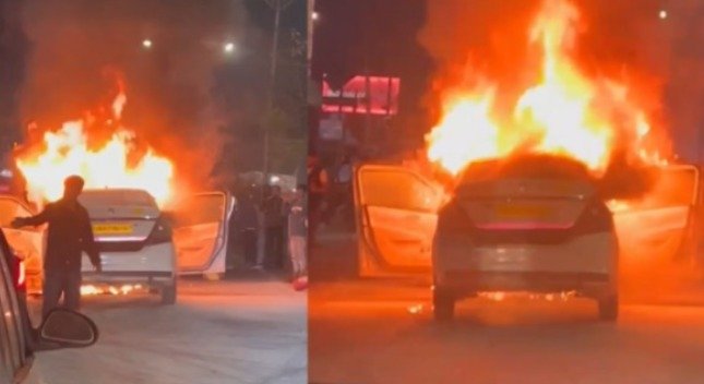 चमन विहार के पास अचानक चलती कार में लगी आग, चालक ने ऐसे बचाई अपनी जान,
